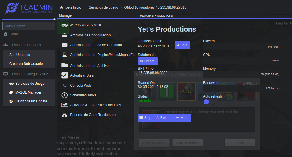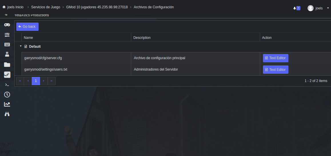Para convertir a un usuario en administrador, primero debe ubicar la opción Archivos de configuración en el menú de su servidor.