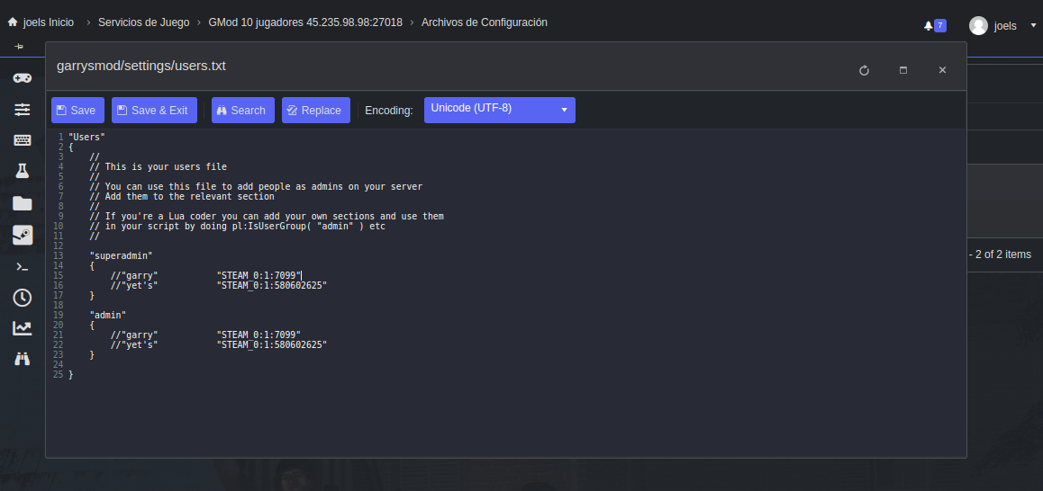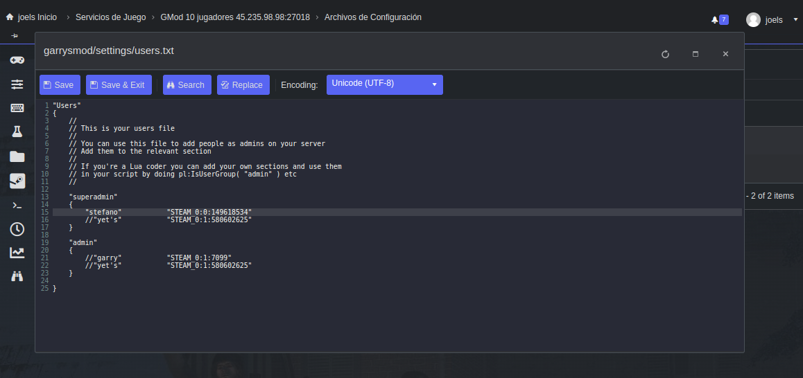 Después de eso, busque "garrysmod/settings/users.txt" y presione [Text Editor].