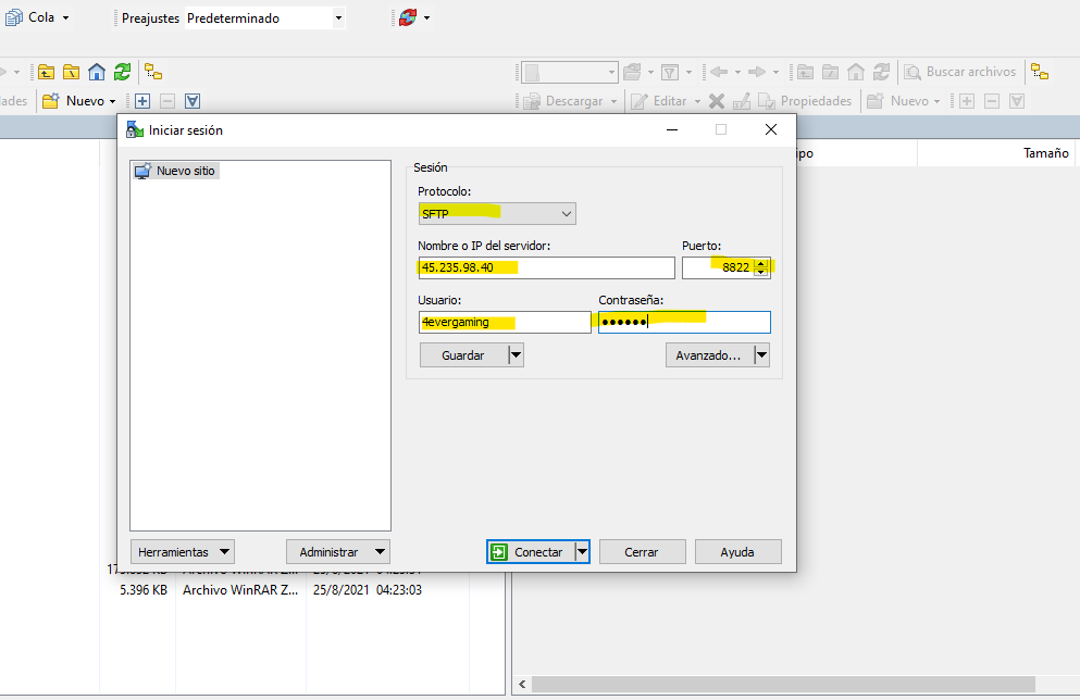 Para conectarnos simplemente ahora clickeamos en "Conectar" - Es probable que les aparezca un cartel aceptando la conexión al servidor, le damos que sí.